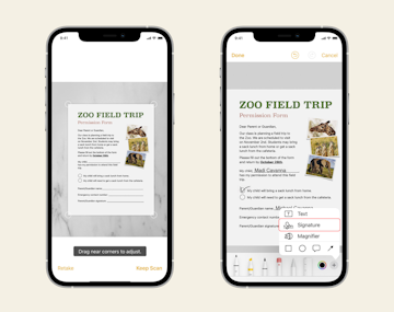 Need to sign a document, an invoice, or a receipt? Use the native scanner iPad and iPhone have.